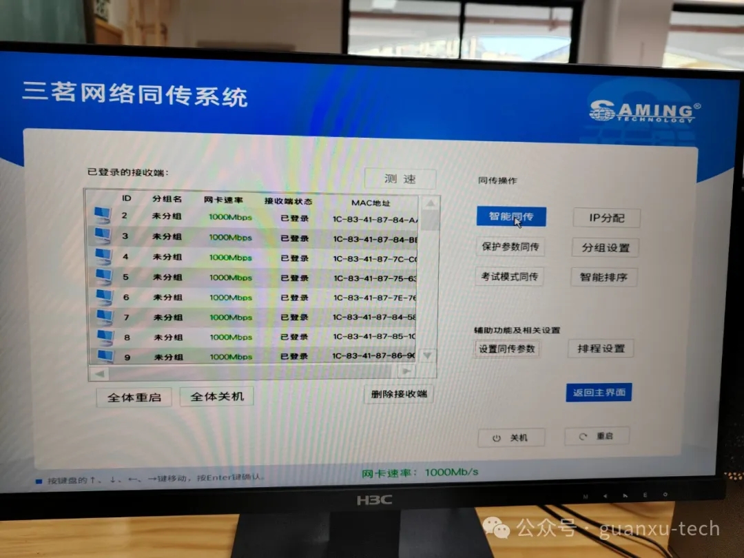 支持任意一台电脑作为发送端,进行分区智能同传、考试模式同传、保护参数同传、智能排序、排程设置、分组设置、IP分配、断点续传等操作,实现机房智能化部署。