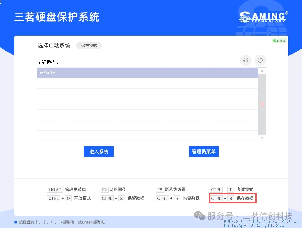 若系统托盘无对应图标,可在开机硬盘保护界面使用快捷键【Ctrl+B】进行快速保存;