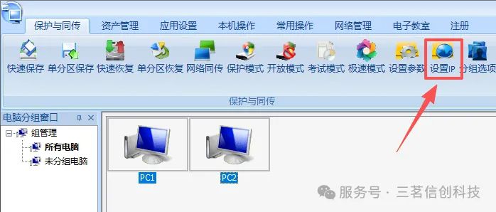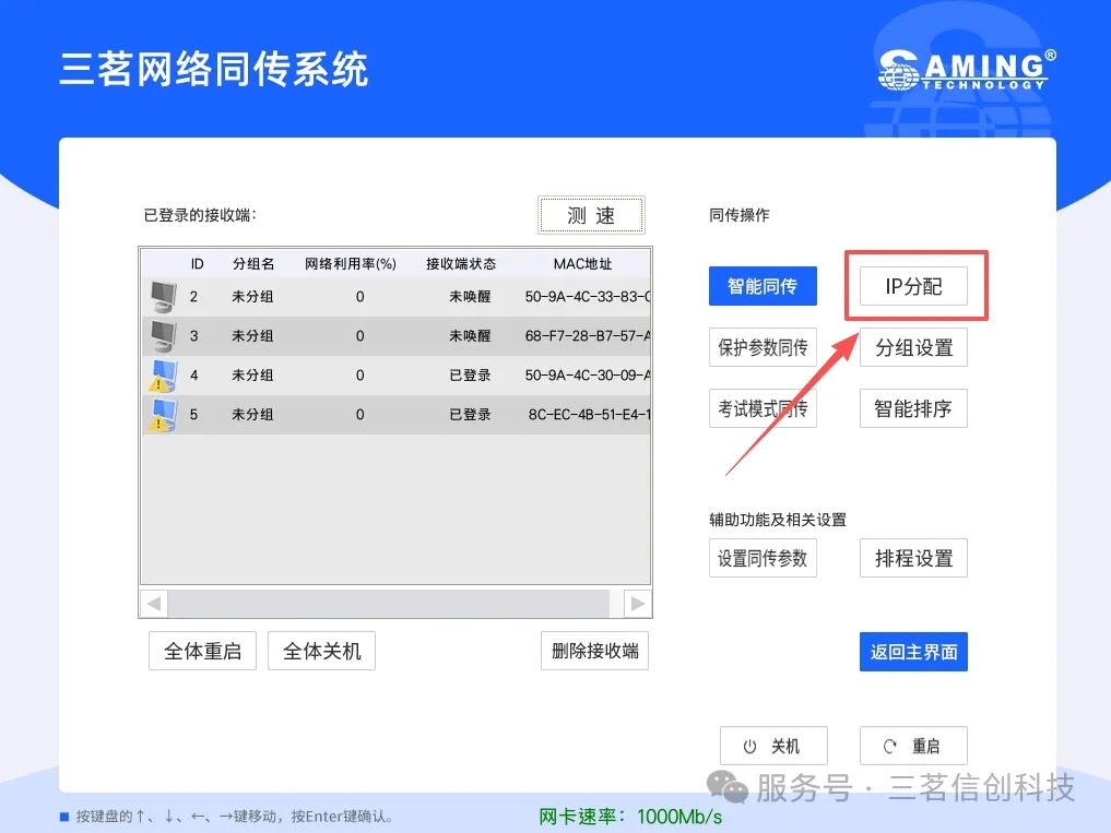 1、网络同传功能:利用系统网络同传IP分配功能,批量同步预设的计算机名与 IP 地址。