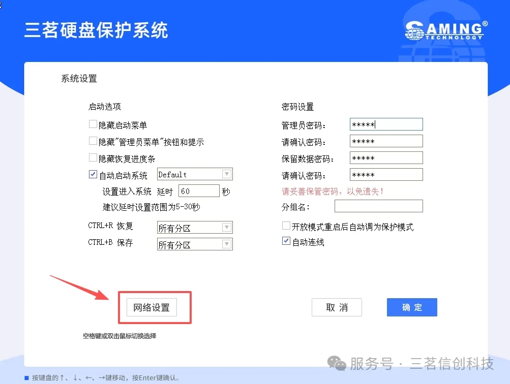 1、保护模块:开机按Home键进入管理员界面,系统设置--网络设置修改。