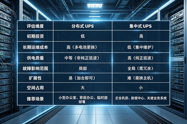 评估维度 | 分布式UPS | 集中式UPS |