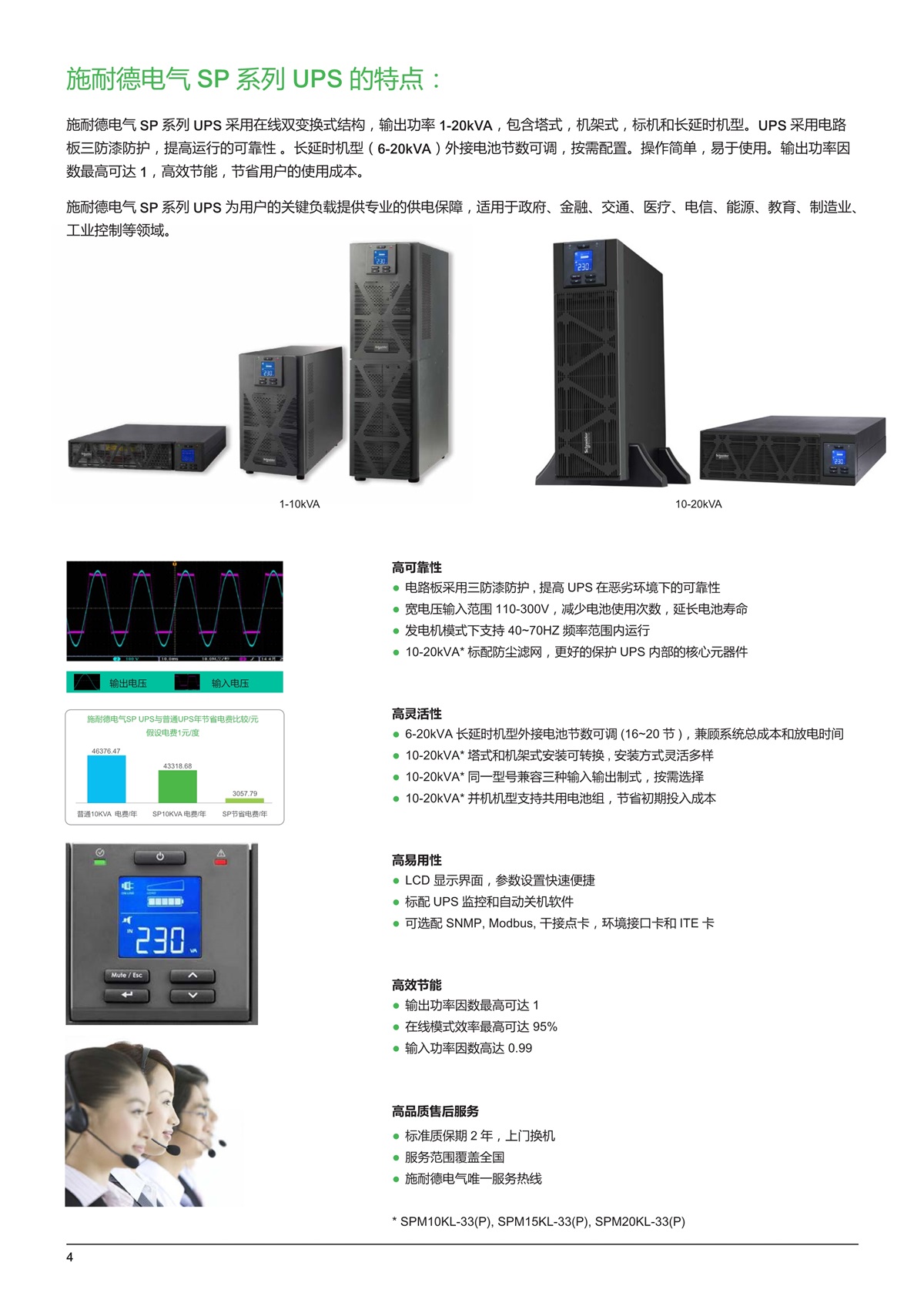 优势1. 110-300V宽电压输入范围,减少电池使用次数,延长电池寿命2. 采用三防漆,适应多种严苛使用环境3. 1~3kVA标配电池断开装置,延长电池寿命4. 人性化LCD界面,方便监控及维护5. 2 年保修,上门换机,服务覆盖全国