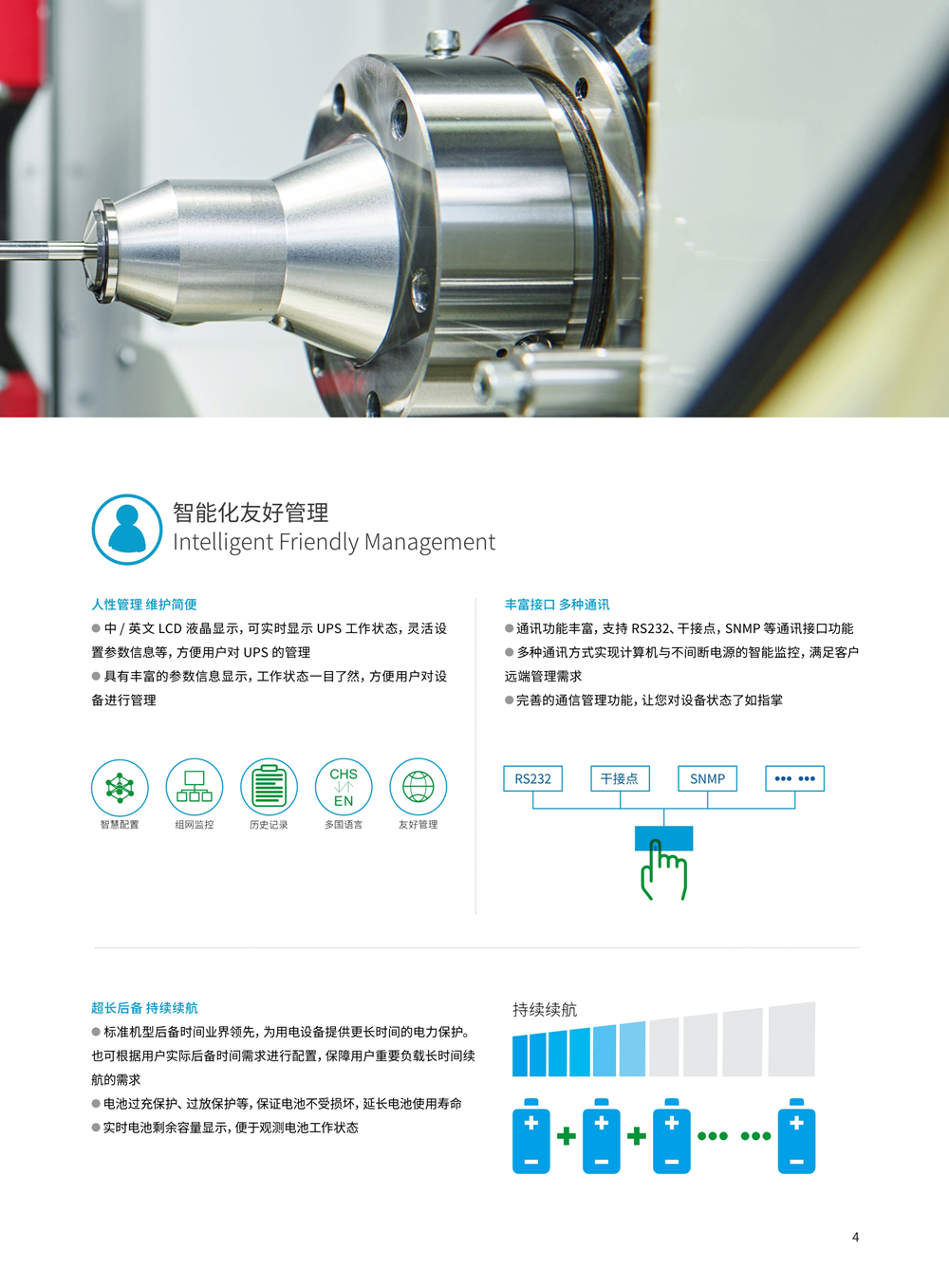 科华 YTG 系列小功率 UPS,采用全数字化控制技术、类模块化设计,具有功能全、高可靠、操作简单、维护便捷等优点,配以性能优越的功率器件和逆变模块、智能化多模式电池管理技术,满足恶劣电网环境的电力保护,为负载提供纯净、安全、稳定的电源。
