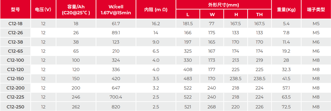 - 采用前沿的极板设计及端子设计,辅以配方和焊接工艺,在保证容量的同时,提高了电池的高功率放电性能。