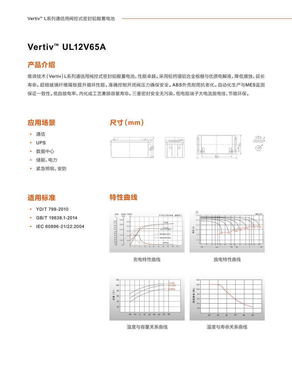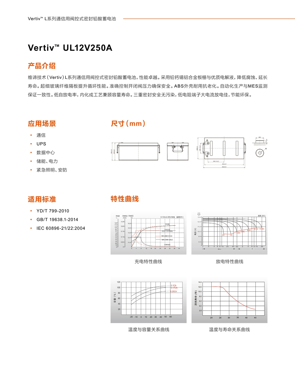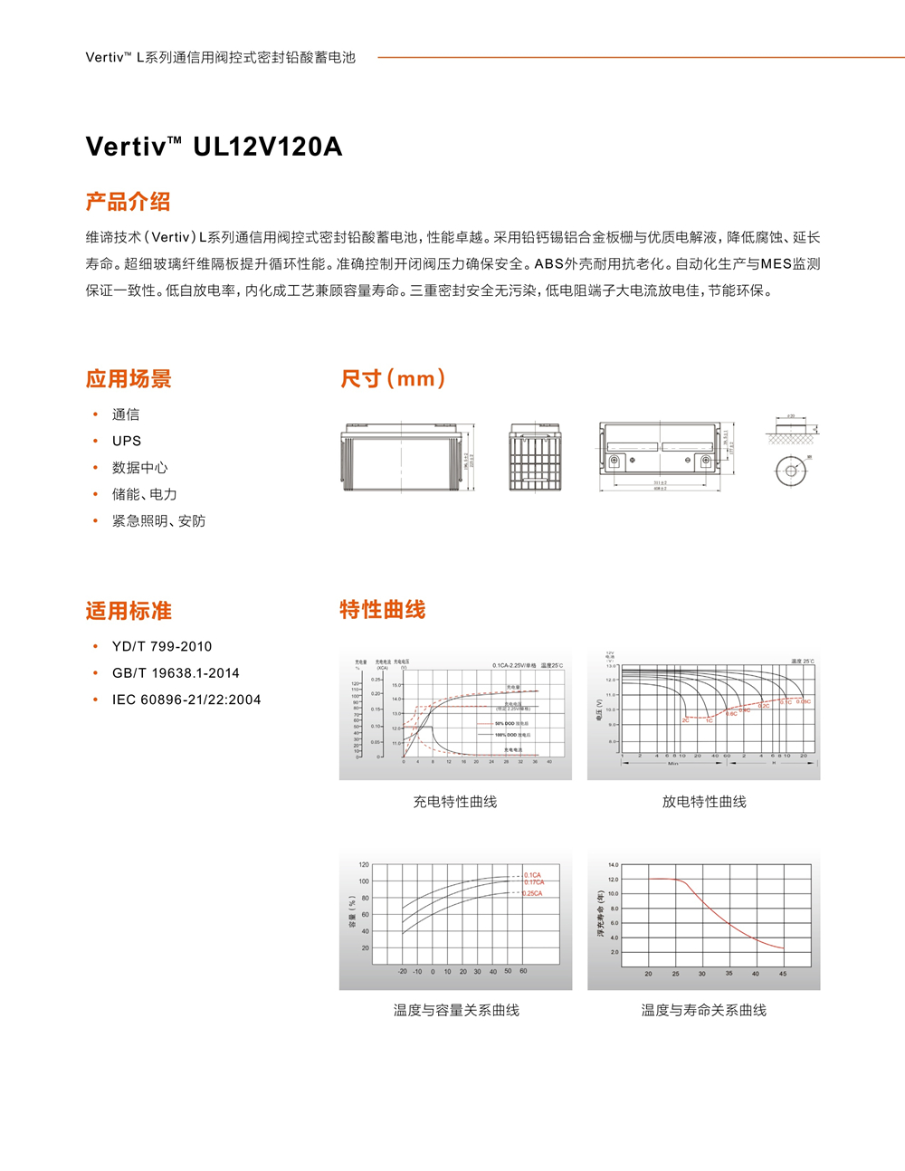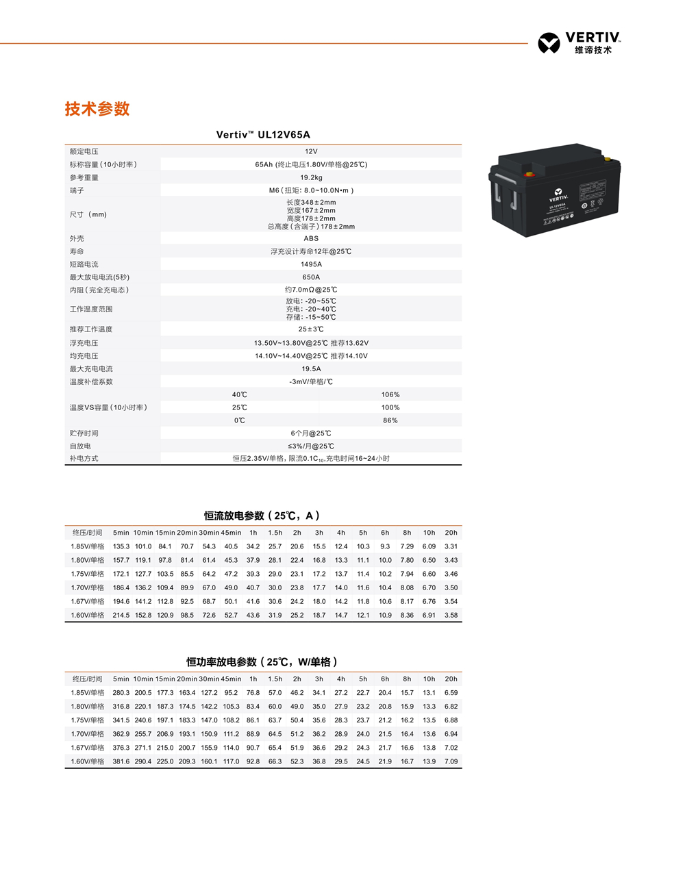蓄电池是组成UPS稳定供电系统中非常重要的一个部分。因此提升蓄电池的品质,降低蓄电池的故障率能有效提高整个UPS系统的可靠性。维谛根据UPS的工作特性提供了长寿命,高放电功率,高安全可靠的蓄电池系列
