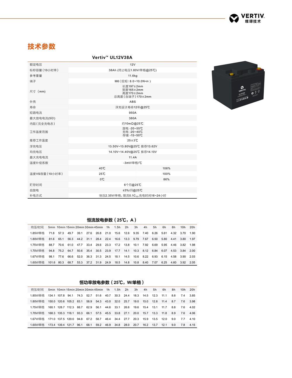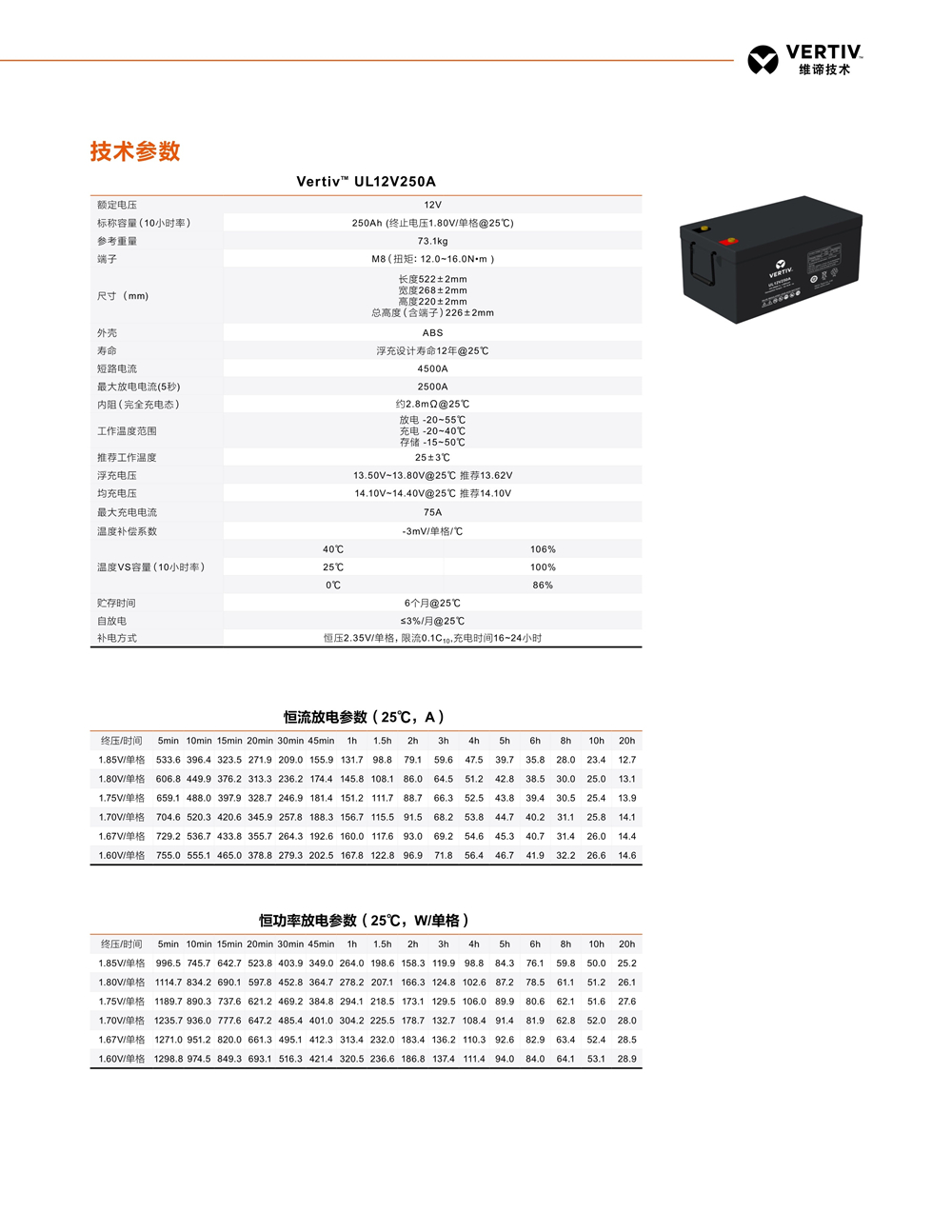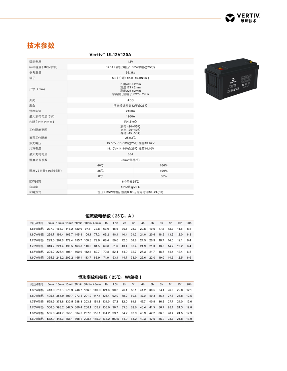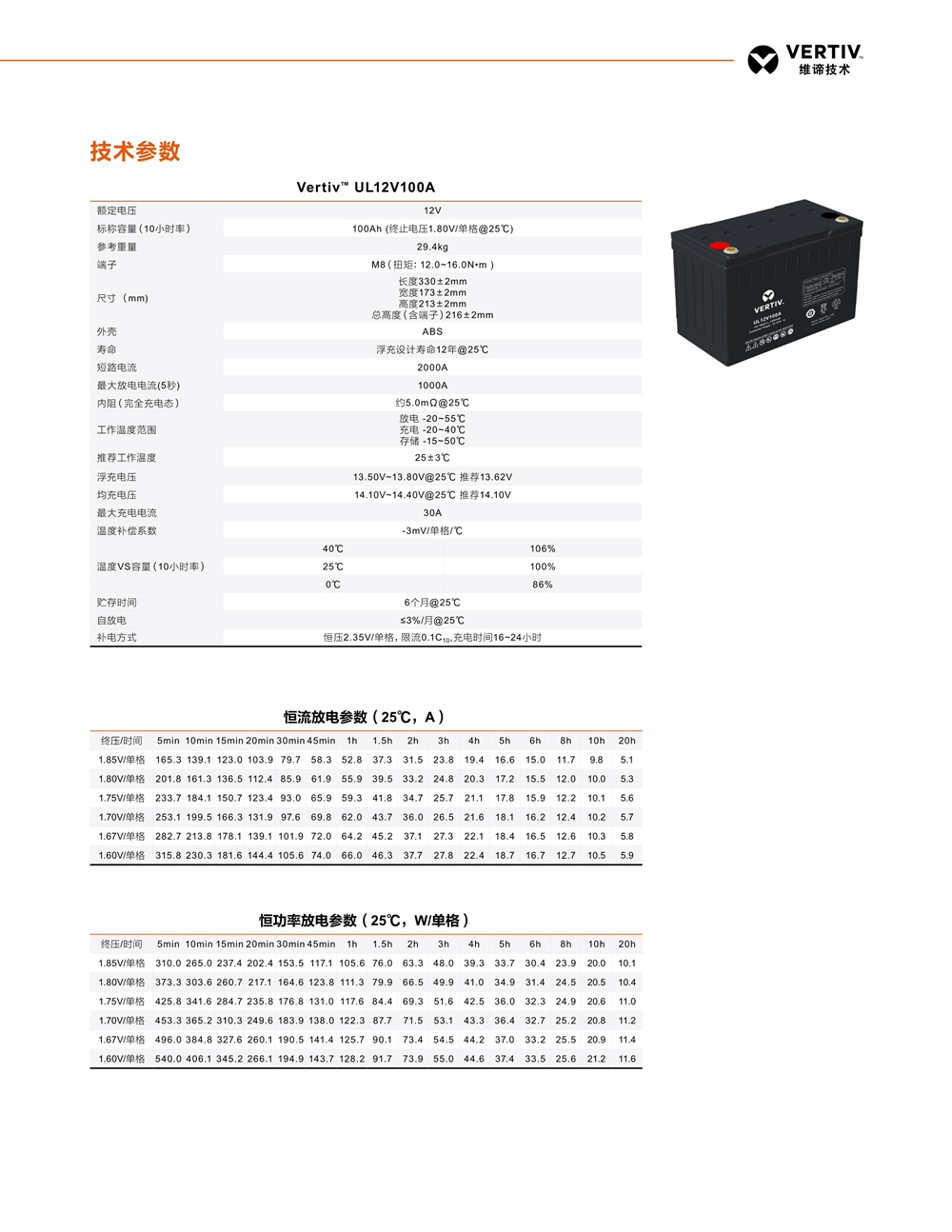 蓄电池是组成UPS稳定供电系统中非常重要的一个部分。因此提升蓄电池的品质,降低蓄电池的故障率能有效提高整个UPS系统的可靠性。维谛根据UPS的工作特性提供了长寿命,高放电功率,高安全可靠的蓄电池系列
