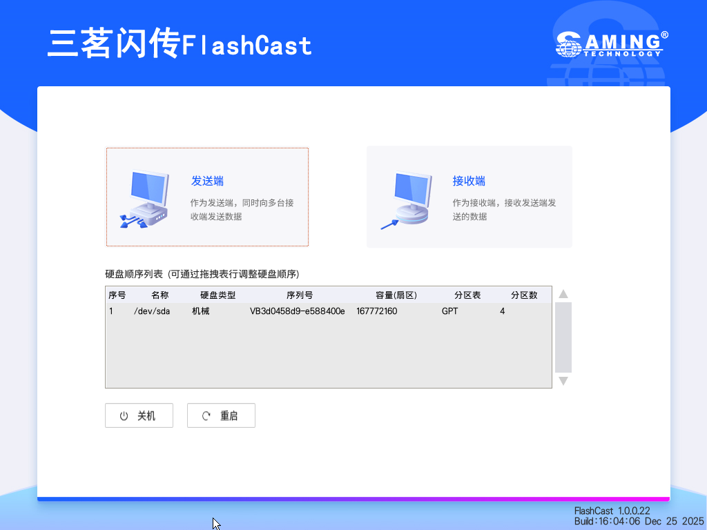 可视化操作界面,清晰区分发送端/接收端,支持硬盘顺序拖拽调整,一键完成批量传输,操作简单直观,大幅降低运维难度。
